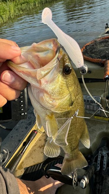 The blade placement almost directly over the hook to which during a retrieve gives the best wake effects while still keeping the lure underwater making for a more compact appearance. But thanks to the swing blade, when the fish bites, the blade moves out of the way. Traditional non-swinging buzz bait blades can act like weed guards at times. We've noticed a big reduction is missed blow ups.